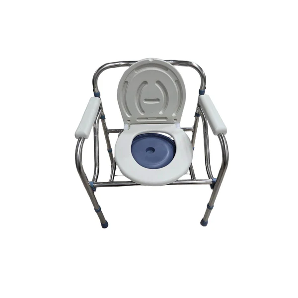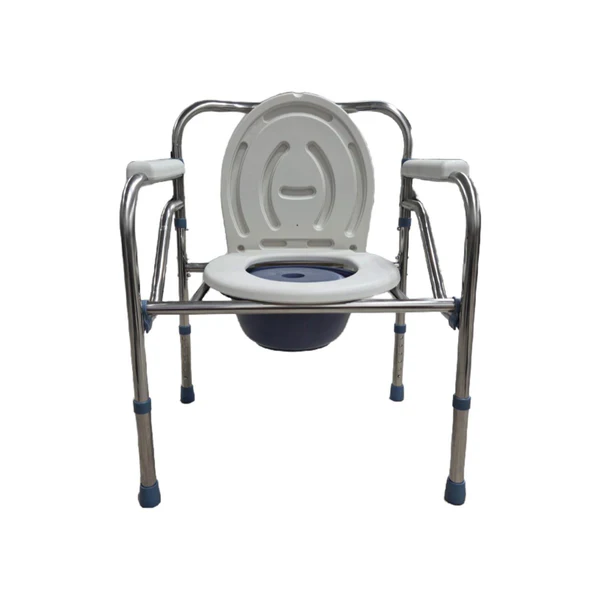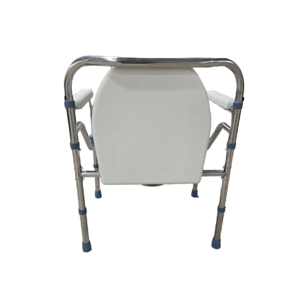 Fabricado con estructura de acero cromado liviana y resistente, ofrece estabilidad y durabilidad. Su asiento plástico ergonómico, junto con apoyabrazos plásticos, proporciona mayor comodidad y seguridad al usuario. Además, incorpora una taza amplia y un balde extraíble de gran capacidad, facilitando la higiene y el vaciado.