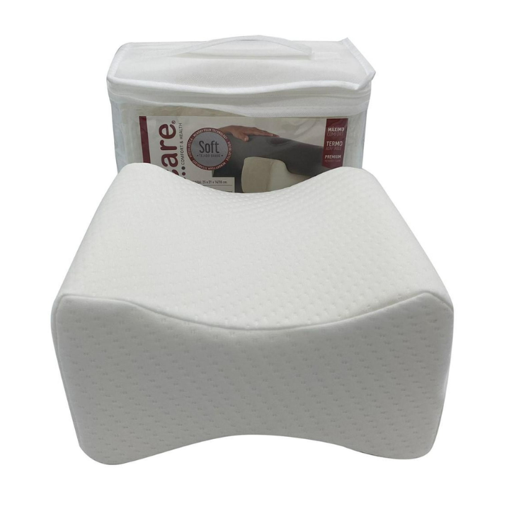 Ayuda a separar las rodillas al dormir de lado, alineando la pelvis y la columna. Previene dolores asociados a la presión del nervio ciático al dormir de lado.