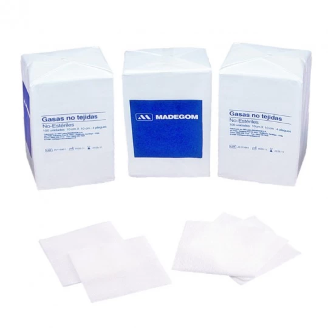 Cada paquete contiene 100 gasas no tejidas no estériles.