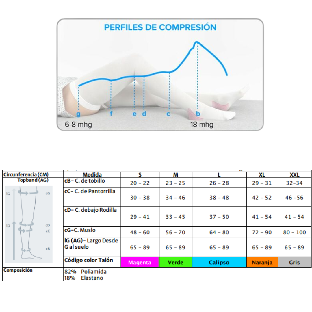 se elije la talla midiendo el perímetro del muslo (cG). Para un mejor manejo y legibilidad, las