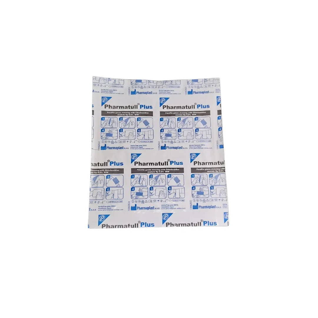 Pharmtull Plus es un apósito de gasa de parafina que contiene digluconato de clorhexidina B.P. al