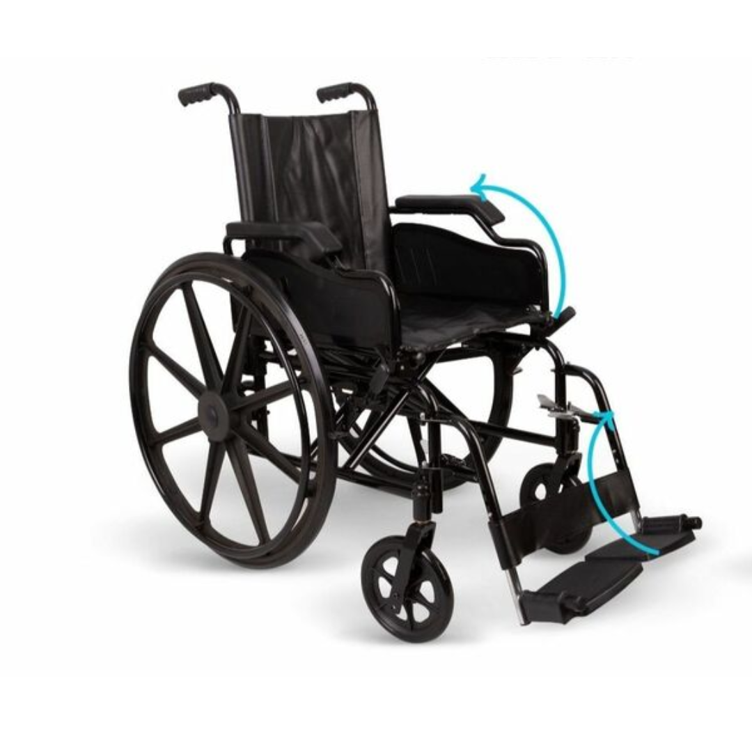 Su empuñadura en polietileno de alta densidad, antideslizante y ergonómica, proporciona una sensación de confort y seguridad. Los reposapiés son regulables en altura mediante botones. Sus apoya piernas son abatibles y desmontables. Su asiento y respaldo es acolchado. Reposapiés elevables. Inventario disponible en el mercado nacional. Servicio técnico postventa: Disponible de forma inmediata a la compra, en caso de falla o mantenimientos post meses de uso.