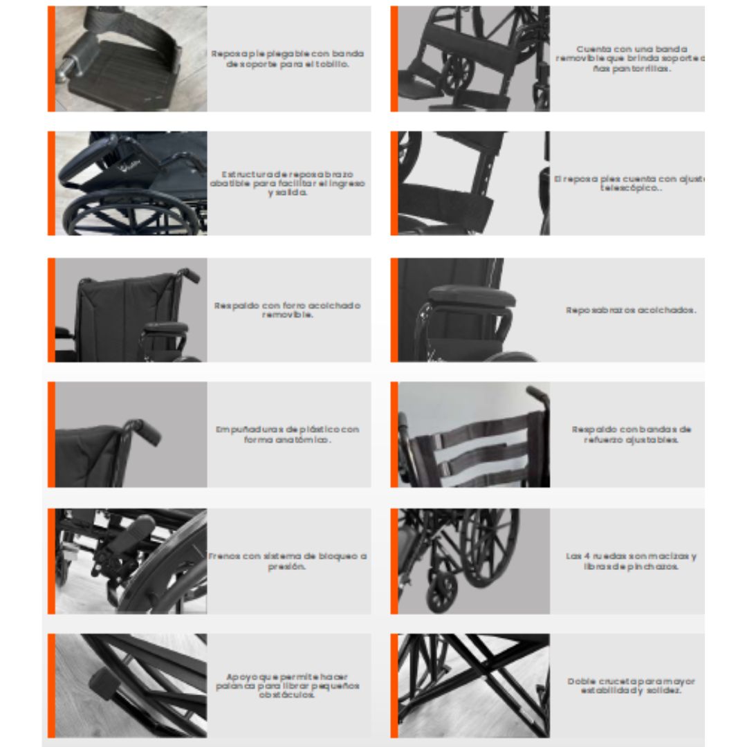 ⚫ Accesorios inferiores traseros para facilitar maniobrabilidad al subir y bajar de nivel la silla.