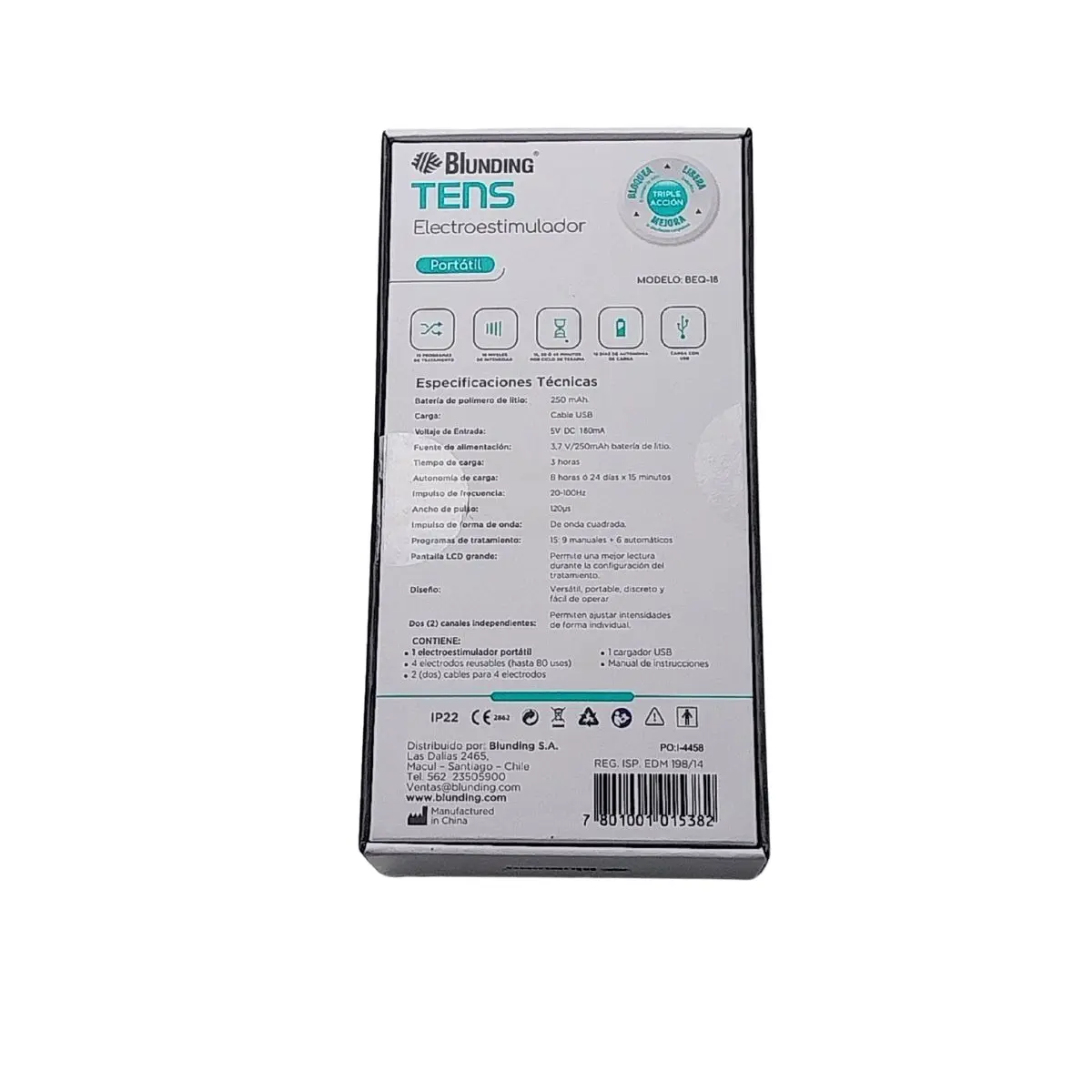 El TENS Blunding 2 Canales es un electroestimulador portátil basado en tecnología TENS (Transcutaneous Electrical Nerve Stimulation) que ayuda a aliviar el dolor muscular y articular a través de impulsos eléctricos suaves aplicados a la superficie de la piel. Es ideal para personas que buscan una solución no farmacológica, práctica y de uso domiciliario para dolores de espalda, cuello, hombros, brazos, piernas o áreas específicas de tensión.
